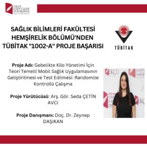 Muhabir- Nurdan Ünlüoğlu İzmir Kâtip Çelebi Üniversitesi (İKÇÜ) Sağlık Bilimleri Fakültesi Hemşirelik Bölümü Arş. Gör. Seda Çetin Avcı’nın projesi TÜBİTAK tarafından desteklenmeye değer görüldü İzmir Kâtip Çelebi Üniversitesi (İKÇÜ) Sağlık Bilimleri Fakültesi Hemşirelik Bölümü Arş. Gör. Seda Çetin Avcı’nın projesi, üniversitelerde, araştırma hastanelerinde ve araştırma enstitülerinde yürütülecek kısa süreli, küçük bütçeli araştırma ve geliştirme projelerinin desteklenmesini içeren TÜBİTAK 1002-A Hızlı Destek Programı (Acil Destek Modülü) kapsamında kabul gördü. İKÇÜ Sağlık Bilimleri Fakültesi Hemşirelik Bölümü Arş. Gör. Seda Çetin Avcı’nın yürütücüsü; Ege Üniversitesi Hemşirelik Fakültesi Öğretim Üyesi Doç. Dr. Zeynep Daşıkan’ın danışmanı olduğu “Gebelikte Kilo Yönetimi İçin Teori Temelli Mobil Sağlık Uygulamasının Geliştirilmesi ve Test Edilmesi: Randomize Kontrollü Çalışma” başlıklı proje TÜBİTAK tarafından desteklenmeye değer görüldü.
