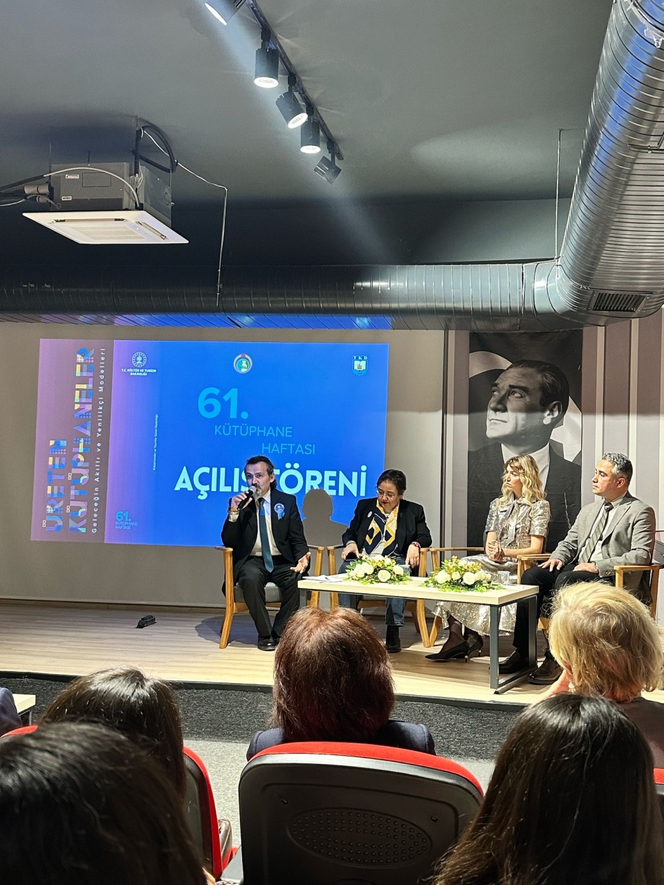 61. Kütüphane Haftası Açılış Etkinlikleri, kent merkezinde Atatürk Anıtı’na çelenk konulması ile başladı. Ardından Atatürk İl Halk Kütüphanesi’nde gerçekleştirilen resmi açılış töreniyle program devam etti. İzmir Kâtip Çelebi Üniversitesi (İKÇÜ) Sosyal ve Beşeri Bilimler Fakültesi Bilgi ve Belge Yönetimi Bölüm Başkanı Prof. Dr. Mehmet Ali Akkaya ile bölüm akademisyen ve öğrencilerinin katılımıyla gerçekleşen törenin açılış konuşmalarını İzmir Valisi Süleyman Elban ile Türk Kütüphaneciler Derneği İzmir Şubesi Başkanı Hatice Gümüş gerçekleştirdi.