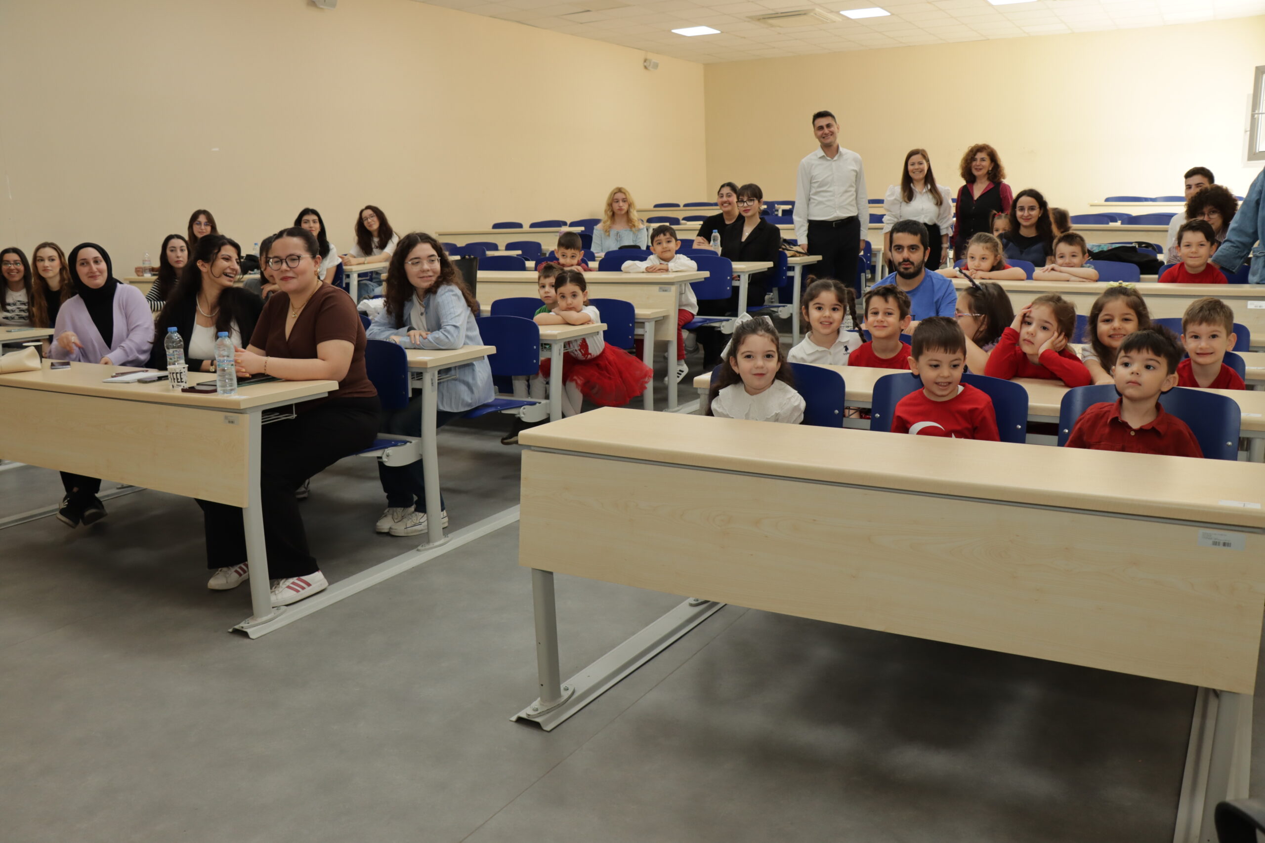 Açılışın ardından İKÇÜ ailesinin en küçük üyeleri, İKÇÜ Hukuk Fakültesi Milletlerarası Özel Hukuk Anabilim Dalı Başkanı Prof. Dr. Pınar Karacan’ın dersine katıldılar. Renkli görüntülere sahne olan derste Prof. Dr. Karacan, miniklerle 23 Nisan Ulusal Egemenlik ve Çocuk Bayramı hakkında sohbet etti.