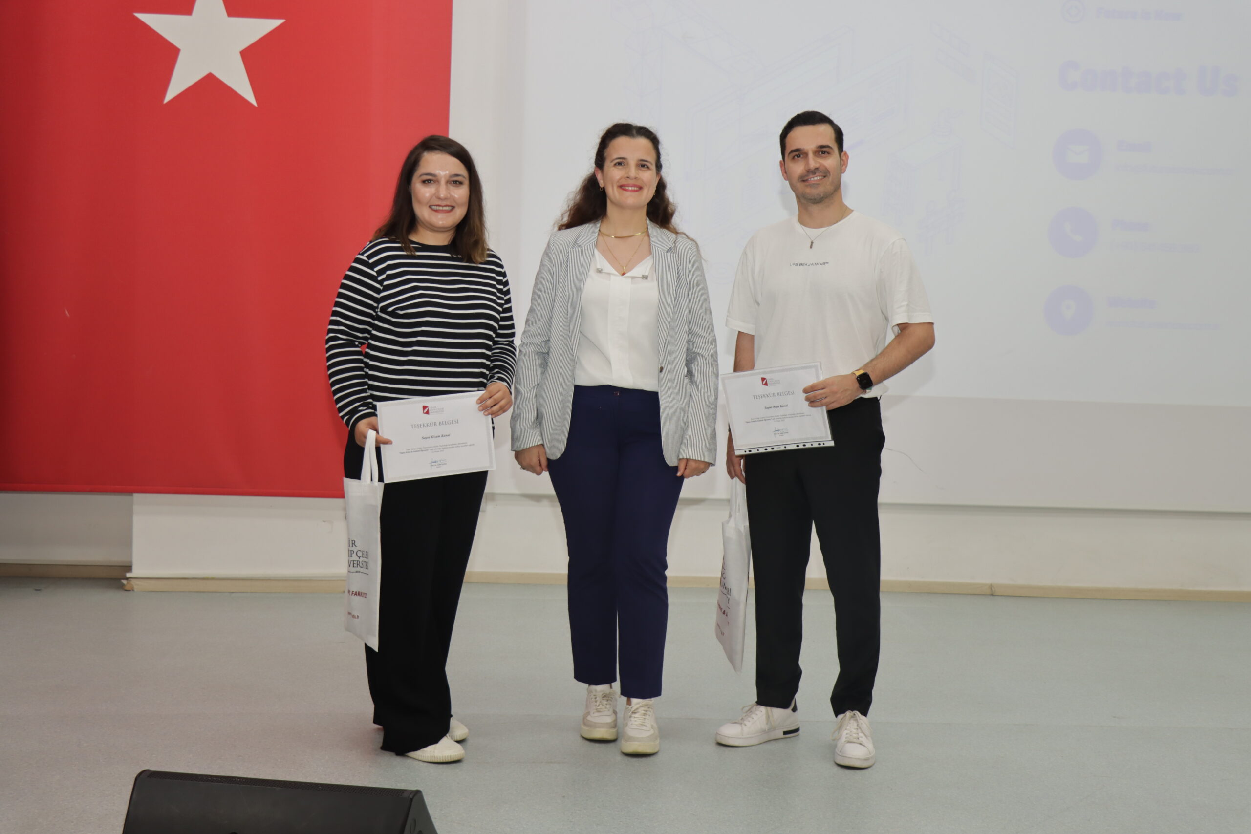 Yapay Zeka Uzmanı Ozan Kanal ile İletişim Uzmanı Gizem Kanal’ın konuşmacı olarak yer aldıkları etkinliğe, Gemi İnşaatı ve Denizcilik Fakültesi Dekanı Prof. Dr. Hakkı Dereli, Kalite Koordinatör Yardımcısı Doç. Dr. Onur Karadal, Yabancı Diller Yüksekokulu Müdürü Dr. Öğr. Üyesi İrfan Arık, Kalite Topluluğu Akademik Danışmanı Dr. Öğr. Üyesi Yasemin Ayhan Öncü, akademisyenler ve öğrenciler katıldı.