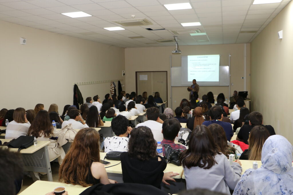 İKÇÜ Eczacılık Fakültesi Dekanı Prof. Dr. Zeynep Şenyiğit, Dekan Yardımcıları Doç. Dr. Gülşah Erel Akbaba ve Dr. Öğr. Üyesi Merve Saylam ile çok sayıda öğrencinin katıldığı konferans, Ege Üniversitesi Eczacılık Fakültesi Farmasötik Biyoteknoloji Anabilim Dalı Öğretim Üyesi Doç. Dr. Yücel Başpınar tarafından verildi.
