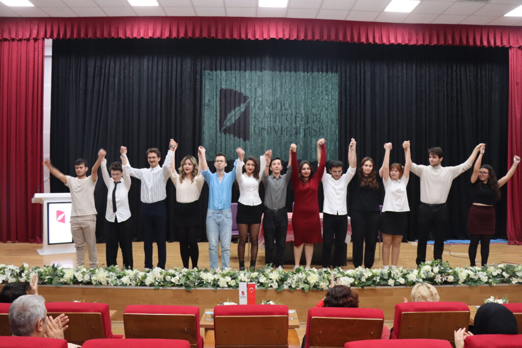 İKÇÜ Prof. Dr. Fuat Sezgin Konferans Salonunda düzenlenen programda İKÇÜ öğrenci toplulukları sahne alırken, Sağlık Kültür ve Spor Daire Başkanlığı’nın Cumhuriyet Bayramı’na özel olarak voleybol ve futsal branşlarında düzenlediği 29 Ekim Cumhuriyet Kupası’nın ödül töreni de gerçekleştirildi.