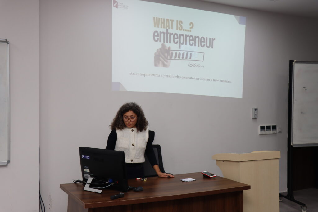 İKÇÜ Proje Genel Koordinatörlüğü’nden Öğr. Gör. Dr. Tuğbanur Özen Balaban tarafından verilen “Girişimciliğe Genel Bir Bakış” başlıklı seminerde, girişimciliğin temel kavramları tanıtılarak, bu alandaki yenilikçi düşünme süreçlerine ilişkin önemli bilgiler sunuldu.