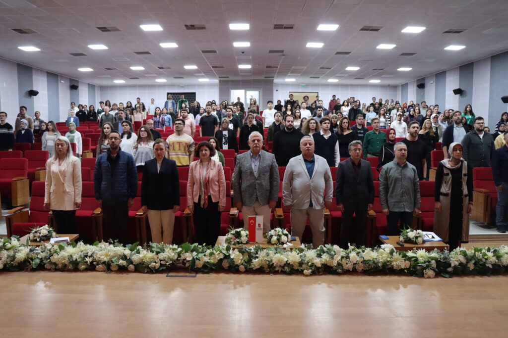 İzmir Kâtip Çelebi Üniversitesi (İKÇÜ) Prof. Dr. Fuat Sezgin Konferans Salonunda düzenlenen etkinliğe Rektör Yardımcısı Prof. Dr. Muhsin Akbaş, Sosyal ve Beşeri Bilimler Fakültesi Dekanı Prof. Dr. Şaban Doğan, İlahiyat Fakültesi Dekanı Prof. Dr. Mehmet Dirik, Sağlık Bilimleri Fakültesi Dekanı Prof. Dr. Derya Özer Kaya, Sosyal Bilimler Enstitüsü Müdürü Prof. Dr. Mustafa Şahin, SEM Müdürü Doç. Dr. Bekir Emiroğlu, Sosyal ve Beşeri Bilimler Fakültesi Dekan Yardımcıları Doç. Dr. Ruhi Can Alkın ve Dr. Öğr. Üyesi Ceren Pilevneli Çubuk, Genel Sekreter Yardımcısı Muhammed Enes Uzun, akademisyenler ve çok sayıda öğrenci katıldı.