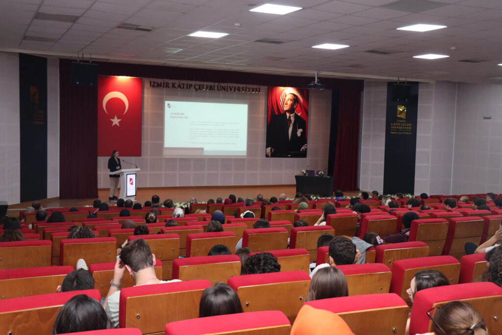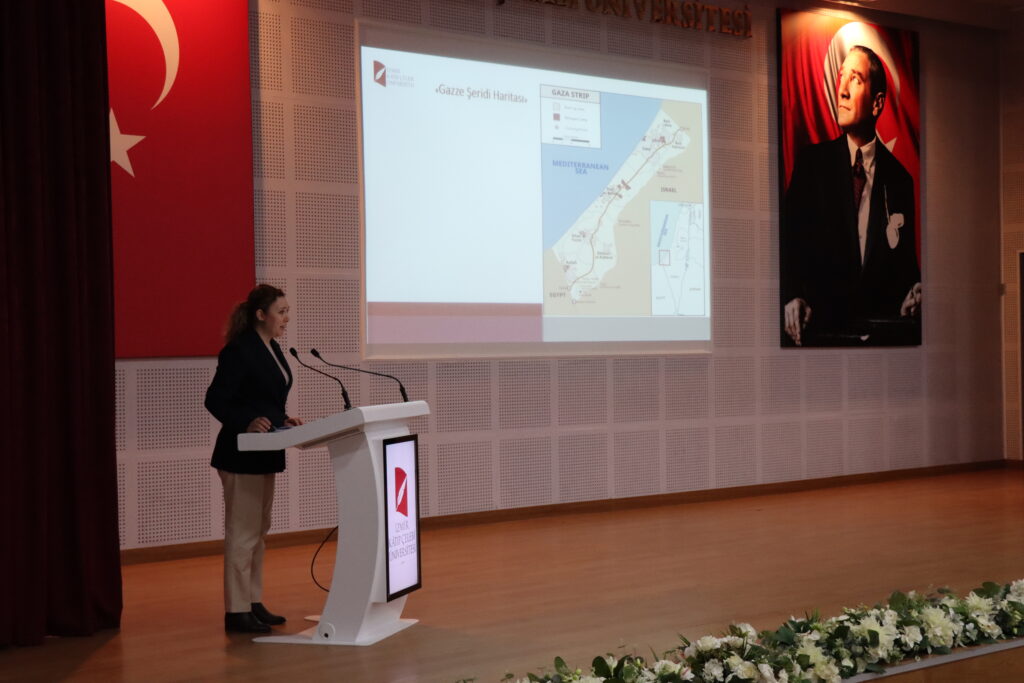 İzmir Kâtip Çelebi Üniversitesi (İKÇÜ) Sosyal ve Beşeri Bilimler Fakültesi ile SKS Tarih ve Kültür Topluluğu tarafından düzenlenen “İnsanlığın Sınavı: Gazze” konulu konferansta konuşan Tarih Bölüm Başkanı Prof. Dr. Fatma Akkuş Yiğit, “Filistin ve Gazze meselesi sadece bir coğrafyanın, Müslümanların ya da sadece bir ırkın ve bir dinin değil, bütün insanlığın meselesidir” dedi.
