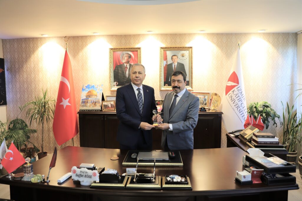 İKÇÜ’nün adını taşıdığı büyük ilim adamı Kâtip Çelebi’nin örnek çalışmalarından bahseden Bakan Yerlikaya, tarihimizdeki bilim ve ilim dünyasındaki şahsiyetlerin başarıyla anılan eserlerinin gençlere yol gösterici mihenk taşları taşıdığını aktardı. Bakan Yerlikaya, “Üniversitenizin adını taşıyan Kâtip Çelebi, ilmin sınırlarını zorlayan büyük bir mütefekkirdi. Coğrafyadan tarihe, denizcilikten bibliyografyaya uzanan muazzam eserler verdi; ‘Cihannümâ’ ile dünyayı anlamaya, ‘Keşfü’z-Zünûn’ ile bilginin atlasını çıkarmaya çalıştı. Kâtip Çelebi bize şunu öğretir; ‘Bilgi, birikmezse eksilir. İlim, hayata değmezse yarım kalır’ Araştırmayı, eleştirel düşünceyi ve toplumsal faydayı, odağına alan Kâtip Çelebi Üniversitesinin yürüyüşü budur. Miras, taşınan bir yük değil; omuzlanan bir bayraktır. Bugün sizden beklenen, bu bayrağı daha yükseğe taşımanız, daha çok okumanız, daha çok düşünmeniz, daha çok üretmenizdir. Çünkü Türkiye’nin en büyük gücü sizlersiniz. Türkiye gençleriyle büyüyecek ve daha da güçlenecek” diye konuştu.