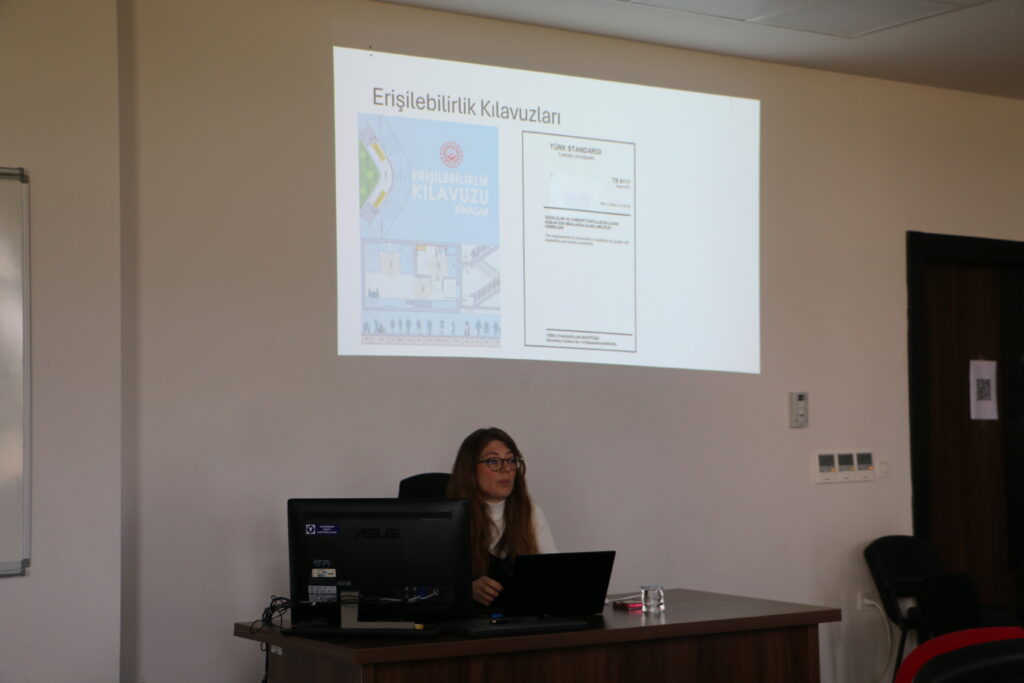 Erişilebilirliğin yalnızca bir binanın uygunluğu ile sınırlı olmadığını vurgulayan Arş. Gör. Karakaş, erişilebilirlik zincirinin evden başlayan; kaldırımlar, toplu taşıma, yaya yolları ve varış noktasıyla devam eden bütüncül bir süreç olduğunu anlattı. Arş. Gör. Karakaş, “Bir mekân erişilebilir olsa bile oraya ulaşan yol erişilebilir değilse, bireyin eşit katılım hakkı kesintiye uğrar. Bu nedenle tek bir basamak bile bir kişinin dünyayla bağlantısını koparabilir” dedi.