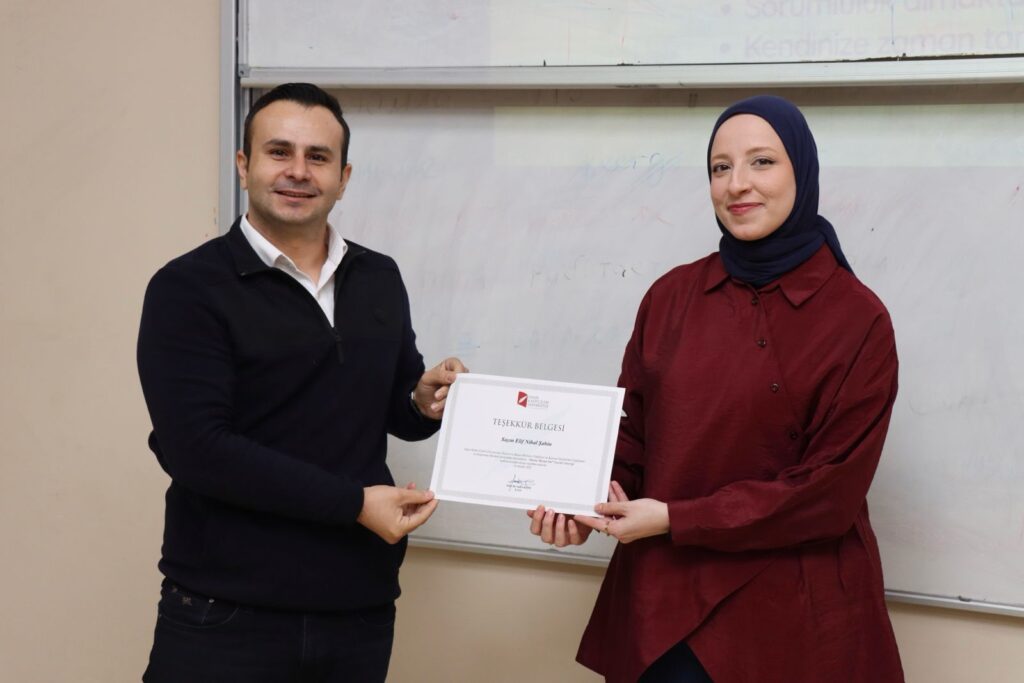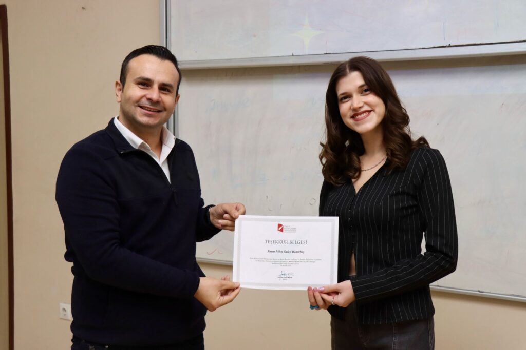 Etkinlik, öğrencilerden gelen soruların yanıtlanmasının ardından, Doç. Dr. Mustafa Yalçın’ın mezunlara belge takdimi ile birlikte sona erdi.