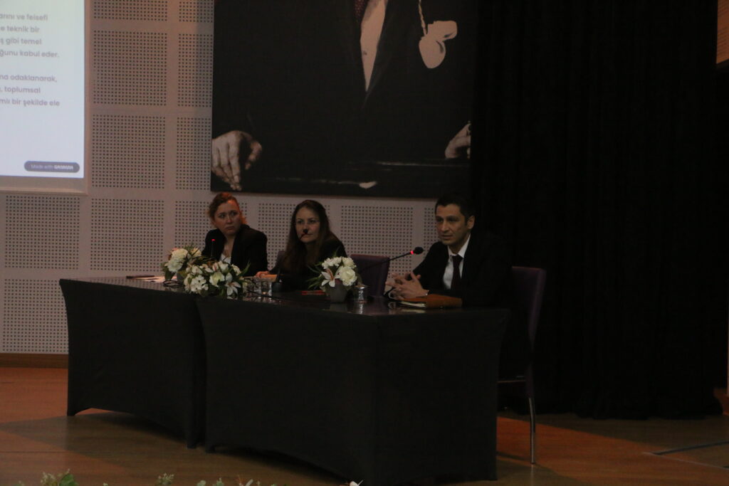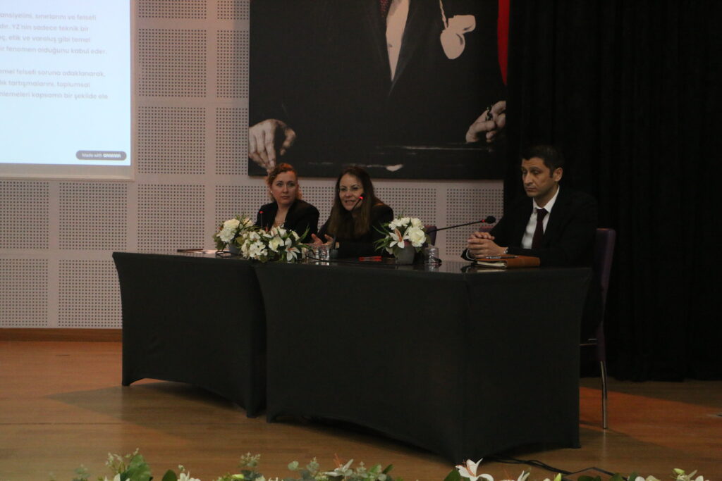 Açılış konuşmalarının ardından, çalıştay oturumlarına geçildi. Kadın ve Aile Çalışmaları Uygulama ve Araştırma Merkezi Müdürü ve Tarih Bölüm Başkanı Prof. Dr. Fatma Akkuş Yiğit moderatörlüğünde gerçekleşen oturumlarda, Yapay Zekâ ve Veri Bilimi Uygulama ve Araştırma Merkezi Müdürü ve Bilgisayar Mühendisliği Bölüm Başkanı Prof. Dr. Ayşegül Alaybeyoğlu, Sosyal ve Beşeri Bilimler Fakültesi Felsefe Bölümü Bilim Tarihi ve Felsefesi Anabilim Dalı Başkanı Doç. Dr. Hilal Kahraman ve Hukuk Fakültesi’nden Dr. Öğr. Üyesi Deniz Onur Aras konuşmacı olarak yer aldı.