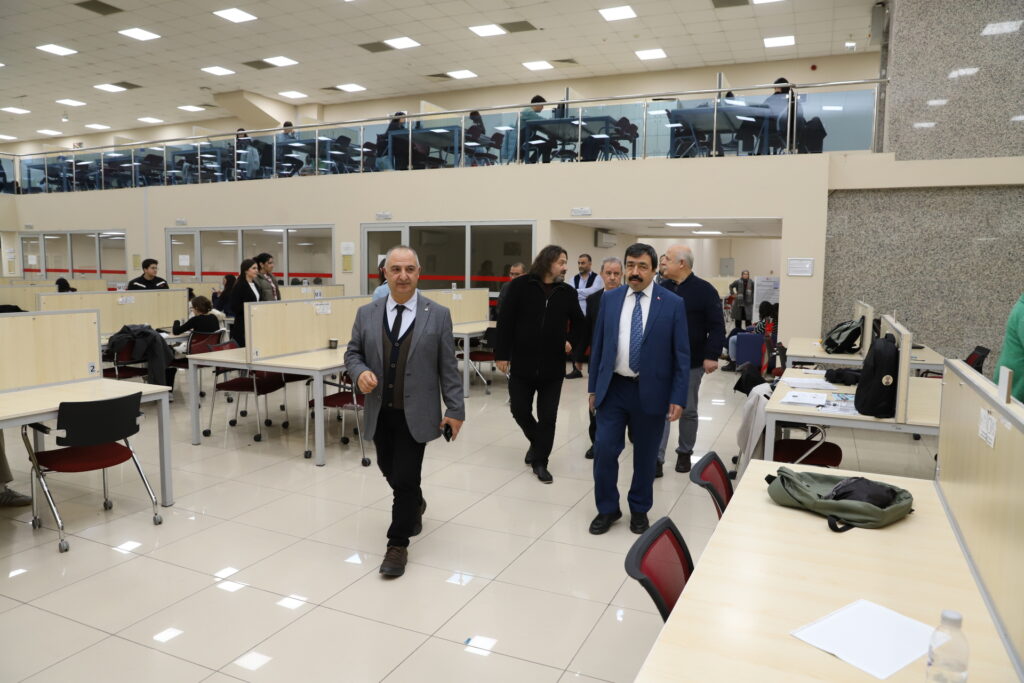 Yeni eklenen salonla birlikte 882 kişilik oturma kapasitesine ulaşan kütüphanede incelemelerde bulunan Rektör Prof. Dr. Saffet Köse’ye Rektör Yardımcıları Prof. Dr. Muhsin Akbaş, Prof. Dr. Süleyman Akbulut ile Prof. Dr. Yasin Bulduklu eşlik etti.