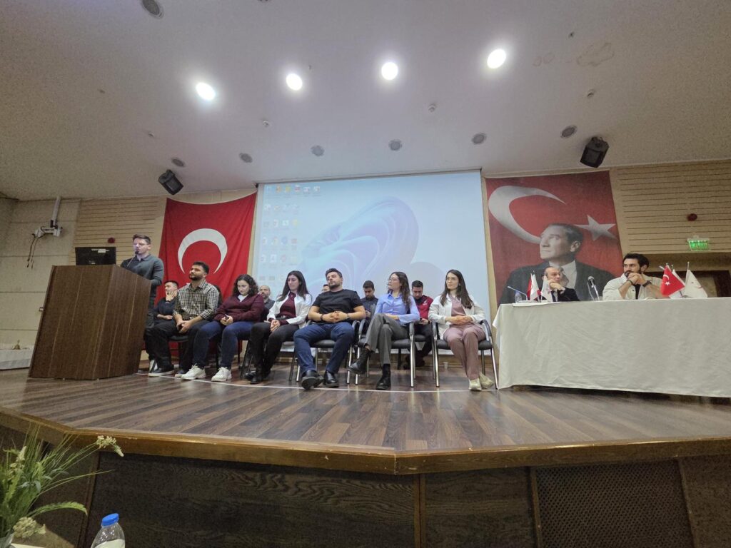 İKÇÜ Atatürk EAH Konferans Salonunda düzenlenen etkinliğe Tıp Fakültesi Dekanı Prof. Dr. Tuğrul Bulut, Dekan Yardımcıları Prof. Dr. Melih Kaan Sözmen ve Prof. Dr. Esra Meltem Koç ile Fakülte Sekreteri Cem Katırcı, akademisyenler ve çok sayıda öğrenci katıldı.