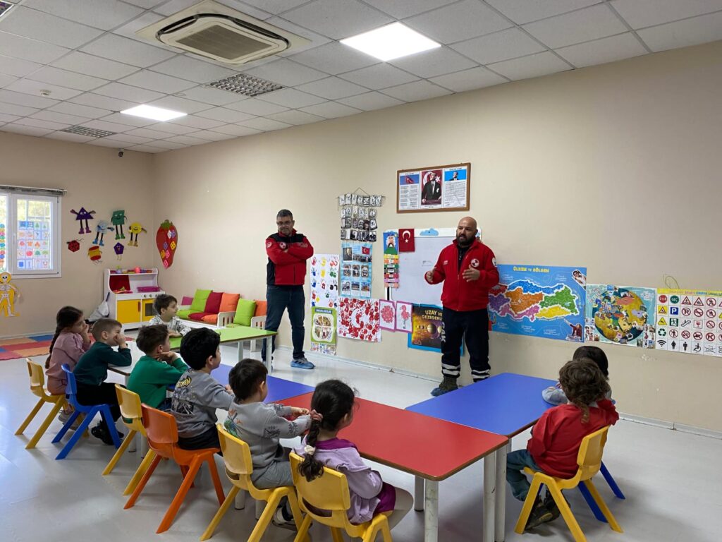 İzmir Kâtip Çelebi Üniversitesi (İKÇÜ) Sosyal Tesisler İktisadi İşletme Müdürlüğü’ne bağlı olarak hizmet veren Çelebi Anaokulu ve Gündüz Bakımevinde eğitim gören miniklere afet farkındalık eğitimi verildi