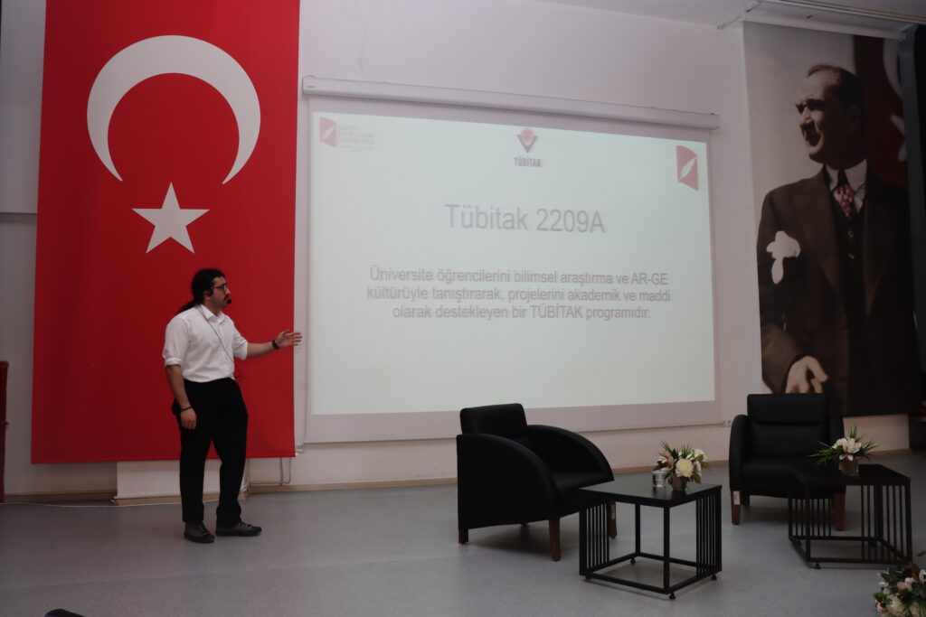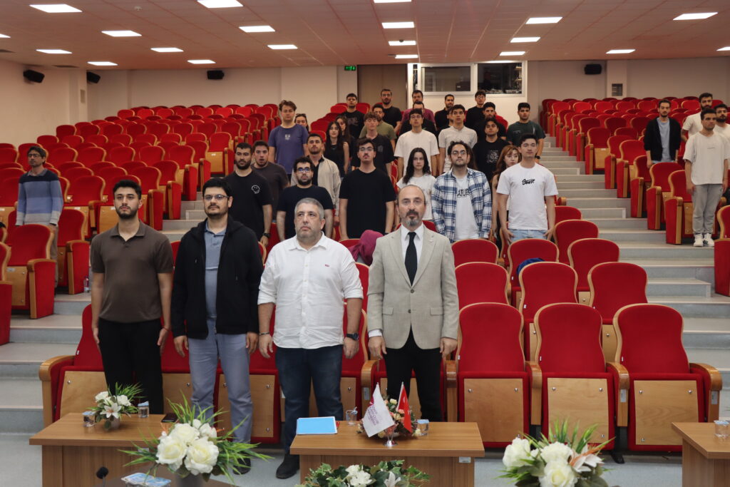Etkinliğin açılış konuşmasını yapan Gemi İnşaatı ve Denizcilik Fakültesi Dekanı Prof. Dr. Hakkı Dereli, fakülte olarak temel hedeflerinin, öğrencilere verilen teorik eğitimi sektörün gerçekleriyle harmanlayarak mezuniyet sonrasına hazır mühendisler yetiştirmek olduğunu vurguladı. Fakülte yönetiminin ve akademik kadronun öğrencilerin mesleki gelişimine verdiği öneme dikkat çeken Prof. Dr. Dereli, öğrencilerin iş hayatına atıldıklarında yabancılık çekmemeleri için üç bileşenli bir strateji izlediklerini ifade etti. Prof. Dr. Dereli, “Yeni kurulan bir fakülte olmamıza rağmen, maddi imkanlarımız doğrultusunda laboratuvar altyapımızı sürekli zenginleştiriyoruz. İkinci olarak, sizden önce bu yollardan geçmiş, sektörde deneyim sahibi profesyonellerle sizleri buluşturarak tecrübe aktarımına olanak tanıyoruz. Üçüncü ve en önemli sacayağımız ise sizleri araştırma ikliminin ve ekosisteminin içine dahil etmek” dedi. Konuşmasında TÜBİTAK 2209-A öğrenci projelerinin önemini vurgulayan Prof. Dr. Dereli, eğitim komisyonu ile üzerinde çalıştıkları yeni bir modelin müjdesini verdi. Mezuniyet öncesinde her öğrencinin bir proje veya bitirme tezi hazırlamaları şeklinde bir planlamanın üzerinde durduklarına değinen Prof. Dr. Dereli, “Eğitim komisyonumuzla birlikte, bitirme tezlerini aynı zamanda birer 2209-A projesi olacak şekilde entegre etmeyi planlıyoruz. Bu sistem sayesinde, öğrencilerimizin projelerinin hem TÜBİTAK desteği almasını hem de mezuniyet sonrası profesyonel iş hayatında kullanabilecekleri somut çıktılara dönüşmesini hedefliyoruz” dedi.