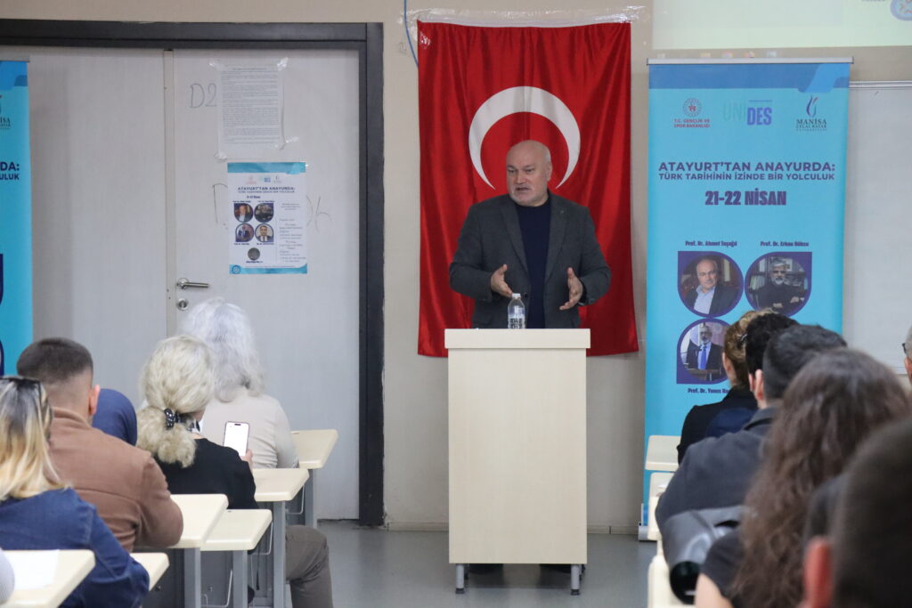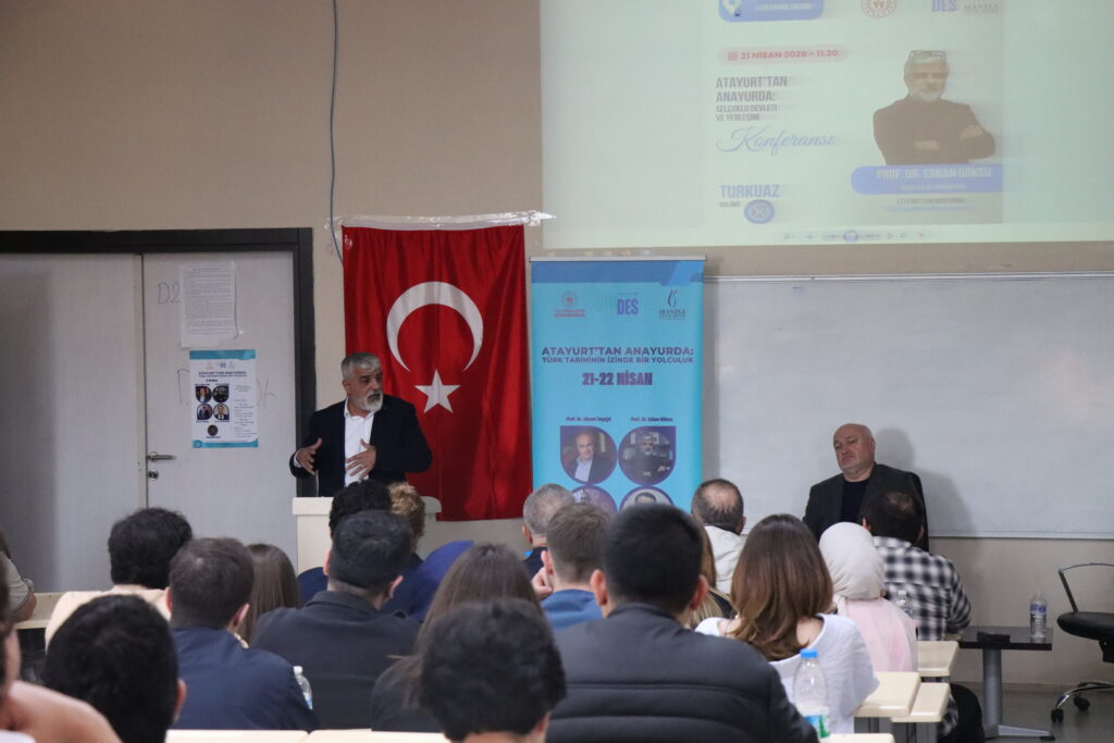 İzmir Kâtip Çelebi Üniversitesi (İKÇÜ) Tarih ve Kültür Topluluğu ve Manisa Celal Bayar Üniversitesi Turkuaz Kulübü öğrencileri tarafından düzenlenen; Prof. Dr. Ahmet Taşağıl ve Prof. Dr. Erkan Göksu tarafından verilen konferansta, Türklerin Orta Asya’dan Anadolu’ya uzanan tarihsel yolculuğu ele alınırken, kültürel süreklilik ve tarih bilincinin önemi vurgulandı