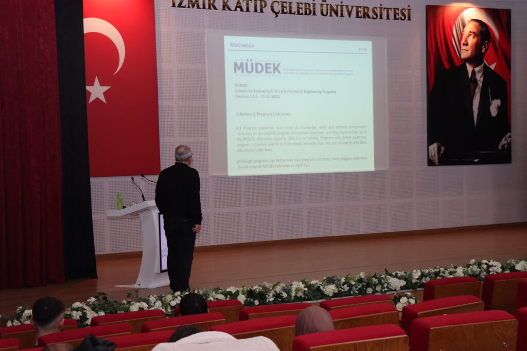 İzmir Kâtip Çelebi Üniversitesi (İKÇÜ) Mühendislik ve Mimarlık Fakültesi tarafından düzenlenen değişiklik yönetimi seminerleri, 2025-2026 Eğitim Öğretim Yılı Bahar Dönemi kapsamında farklı mühendislik bölümlerinden son sınıf öğrencilerinin katılımıyla gerçekleştirildi. İKÇÜ Prof. Dr. Fuat Sezgin Konferans Salonu Mühendislik ve Mimarlık Fakültesi Dekan Yardımcısı Dr. Öğr. Üyesi Aydın Ülker tarafından verilen seminerler, öğrencilerin bitirme projeleri ve mühendislik uygulamalarına yönelik farkındalıklarını artırmayı amaçladı.