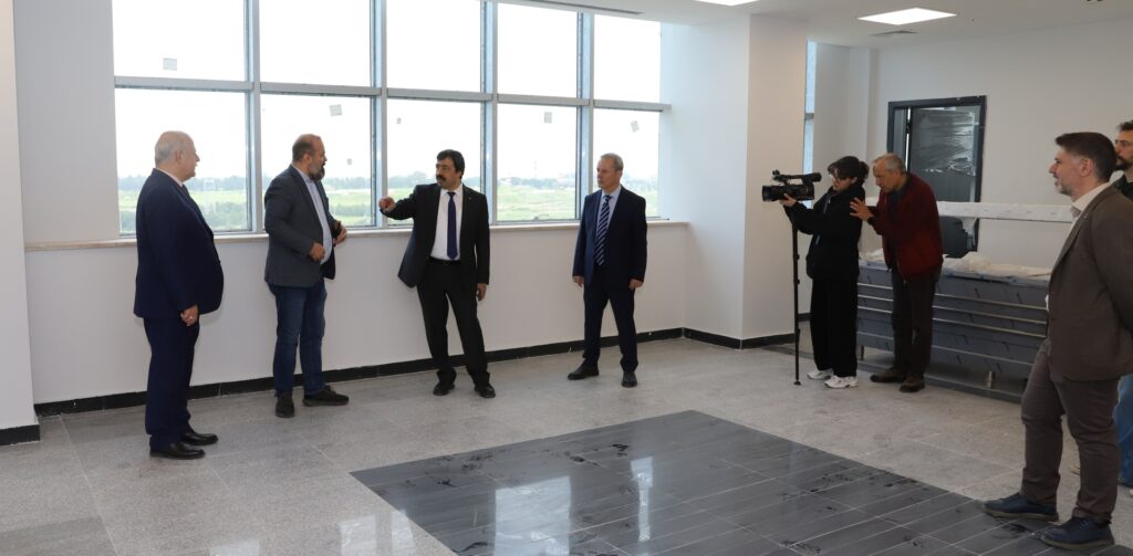 Yapımına 2024 yılında başlanan ve geçtiğimiz ay tamamlanan İKÇÜ-ÜBYS binasında montaj çalışmalarını inceleyen Rektör Köse’ye Rektör Yardımcıları Prof. Dr. Yasin Bulduklu, Prof. Dr. Muhsin Akbaş, Prof. Dr. Süleyman Akbulut, Diş Hekimliği Fakültesi Dekanı Prof. Dr. Ender Akan, Sağlık Bilimleri Fakültesi Dekanı Prof. Dr. Derya Özar Kaya, Genel Sekreter Yardımcısı M. Enes Uzun, Bilgi İşlem Daire Başkanı Fatih Tunçez, Yapı İşleri Daire Başkanı Yasin Yıldız, ilgili birim yöneticileri ile kontrol teşkilatı eşlik etti.