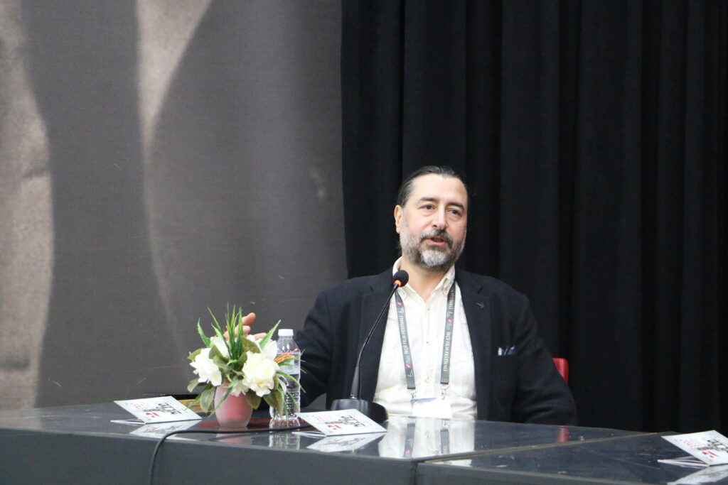 Medya ve İletişim Bölüm Başkanı ve Festival Sanat Yönetmeni Prof. Dr. Cenk Demirkıran moderatörlüğünde, İKÇÜ Hekim Hacı Paşa Konferans Salonunda düzenlenen söyleşiye akademisyenler ve çok sayıda öğrenci katıldı.