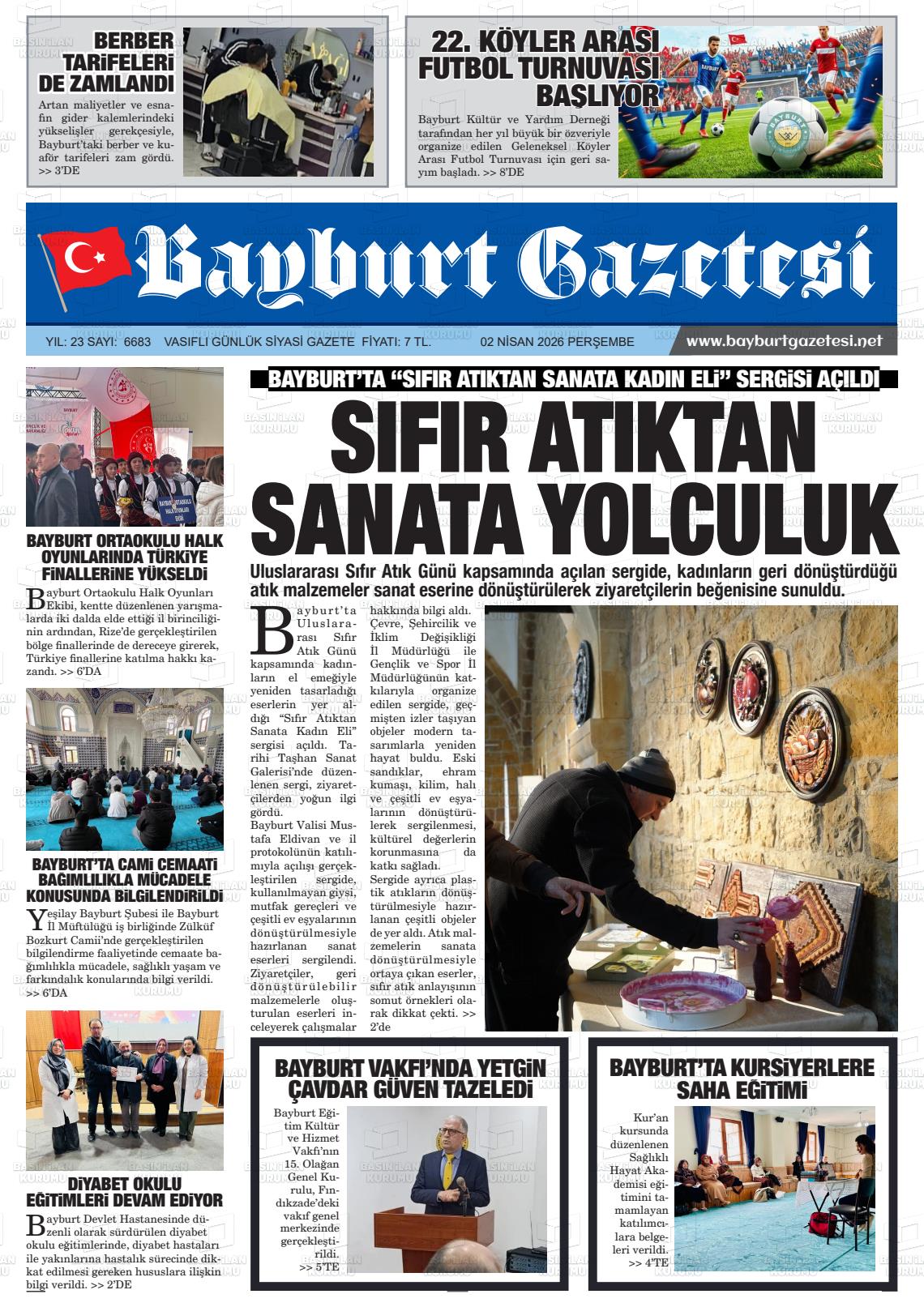 Bayburt Yerel Gazeteleri 02 Nisan 2026, Perşembe Günü Manşeti