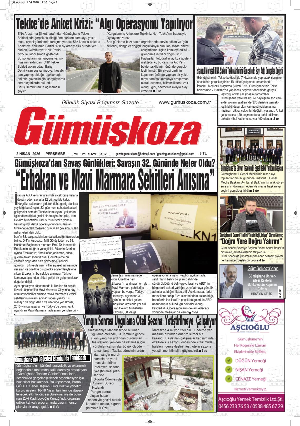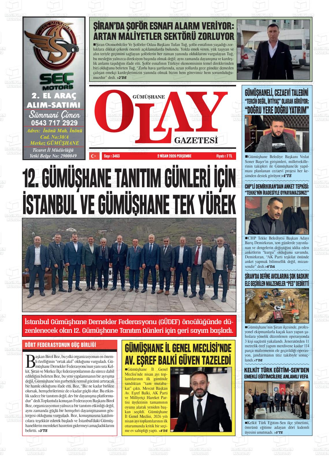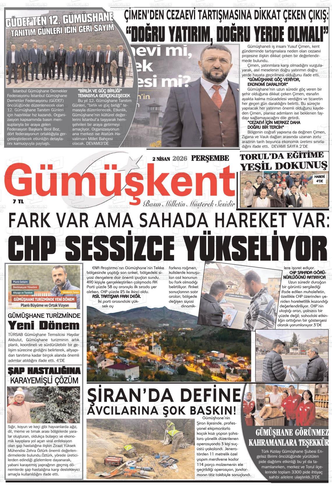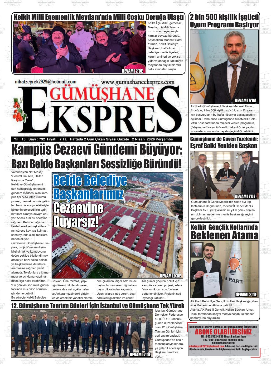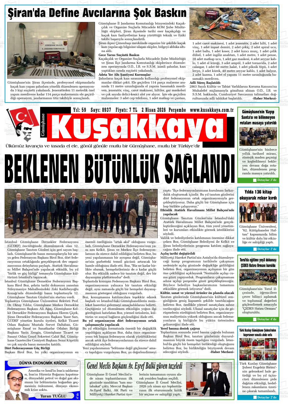 02 Nisan 2026, Perşembe Günü Manşeti